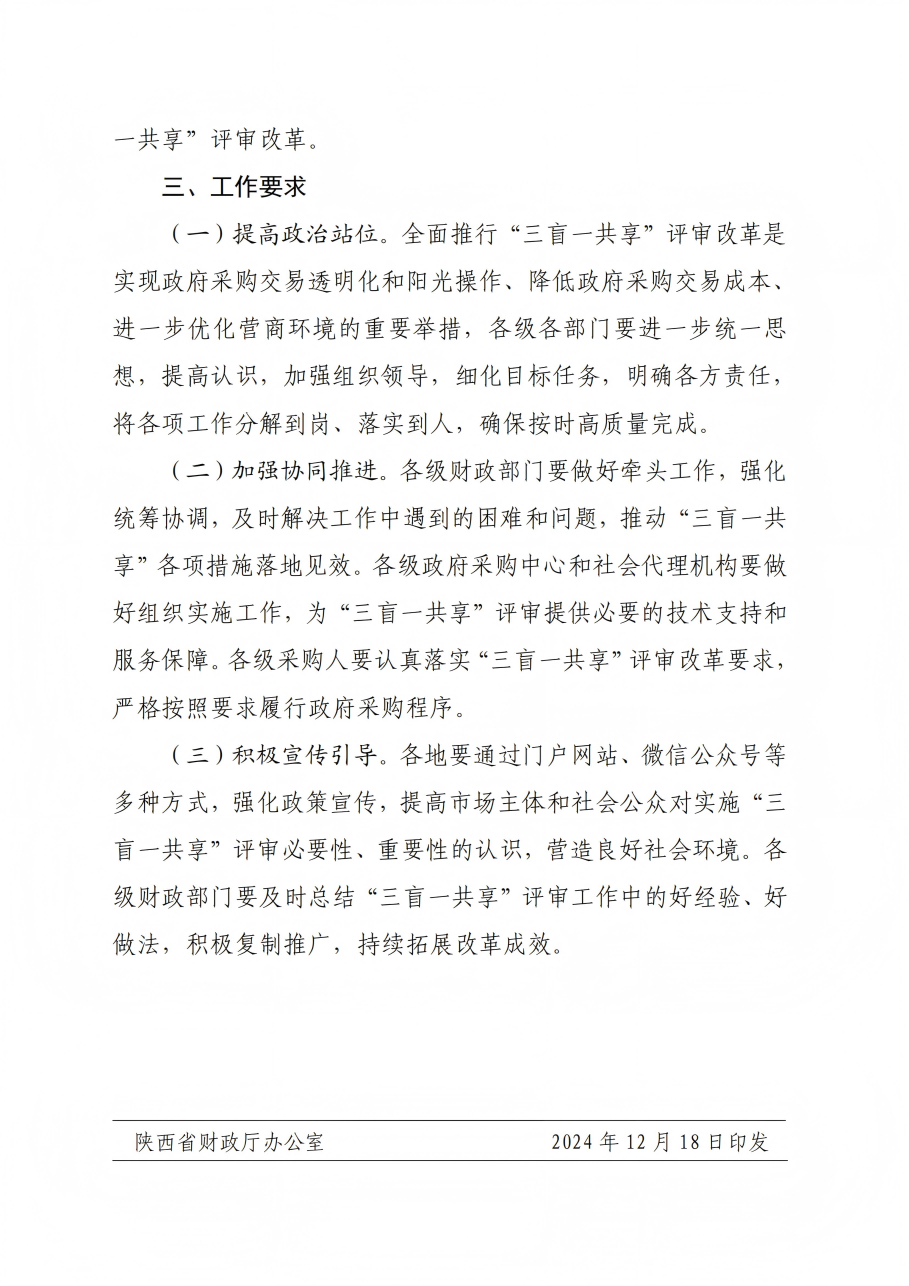 關(guān)于印發(fā)《陜西省政府采購(gòu)領(lǐng)域“三盲一共享”評(píng)審實(shí)施方案》的通知